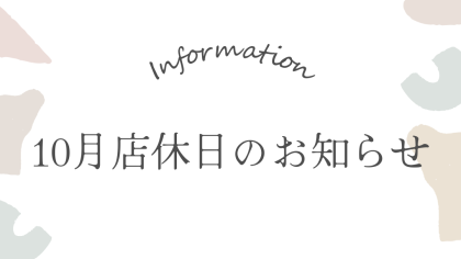 皆様こんにちは本日は10月の店休日をお知らせいたします6日(月)7日(火)13日(月・祝)14日(火)20日(月)21日(火)27日(月)28日(火)以上8日間をお休みさせていただきますもうあっという間に年末になってしまいそうですね!今年の夏は暑かったのでまだすこし気温が高い日も...