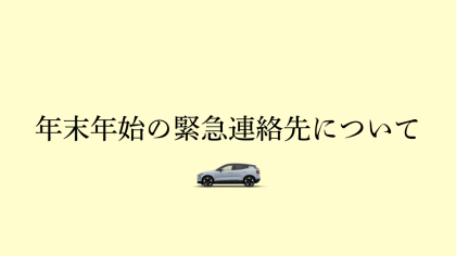 いつもボルボ・カー高崎をご利用いただきありがとうございます。先日もお知らせした通り12/29(月)より1/5(月)まで年末年始休業とさせていただきます。連休中の内におクルマのトラブルがあることも考えられますので改めて緊急時のロードサービスをお知らせいたします...