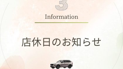 みなさまこんにちは1月も後半に入り、お正月気分も薄まっている今日この頃ですが、みなさまいかがお過ごしでしょうか?本日は2月の店休日をお知らせいたします2月は言わずもがな日数が少ない月となりますので車検のご予定のあるお客様はご注意下さいね!【2月】2日(...