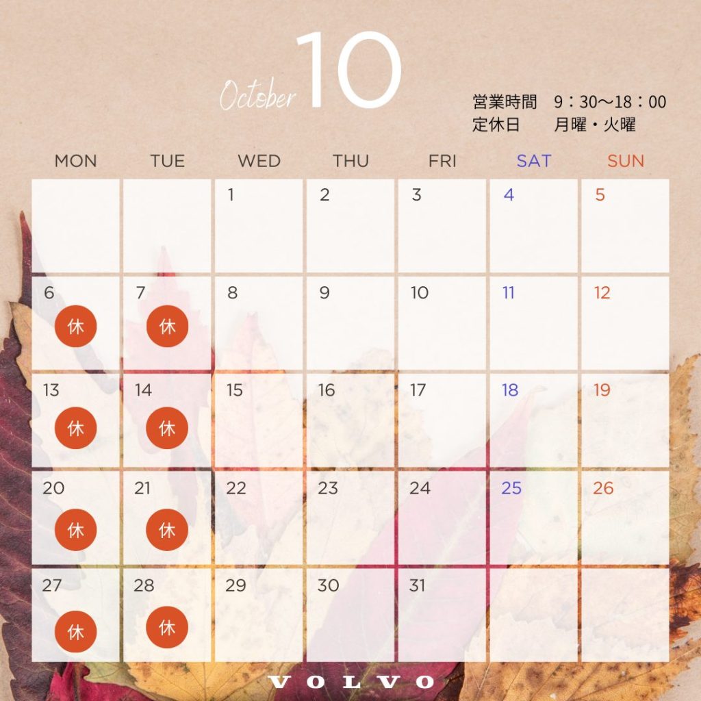 10月は1年の内でも快適な季節かと思いますので、みなさまVOLVOでお出かけを楽しんでくださいね♪