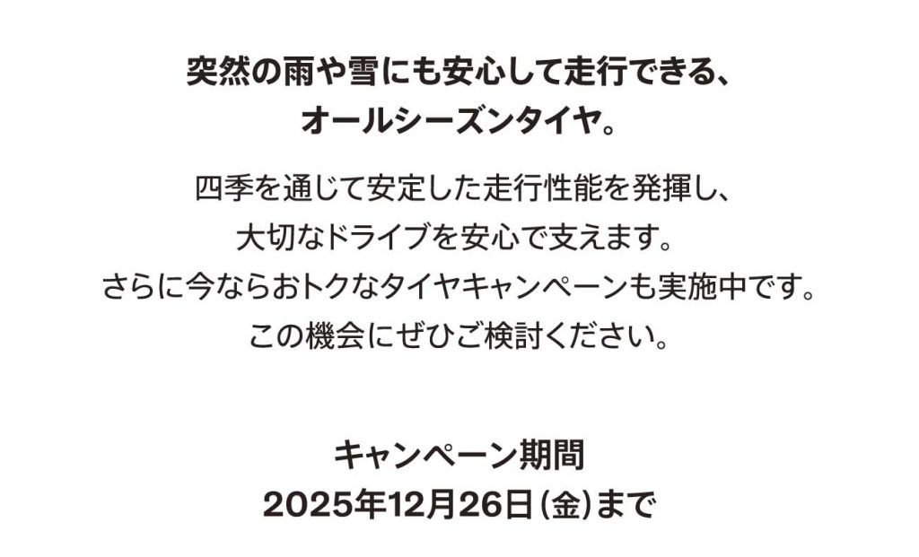 まだ気の早いお話かもしれませんが、ミシュランタイヤから特別価格のオールシーズンタイヤが登場しました!