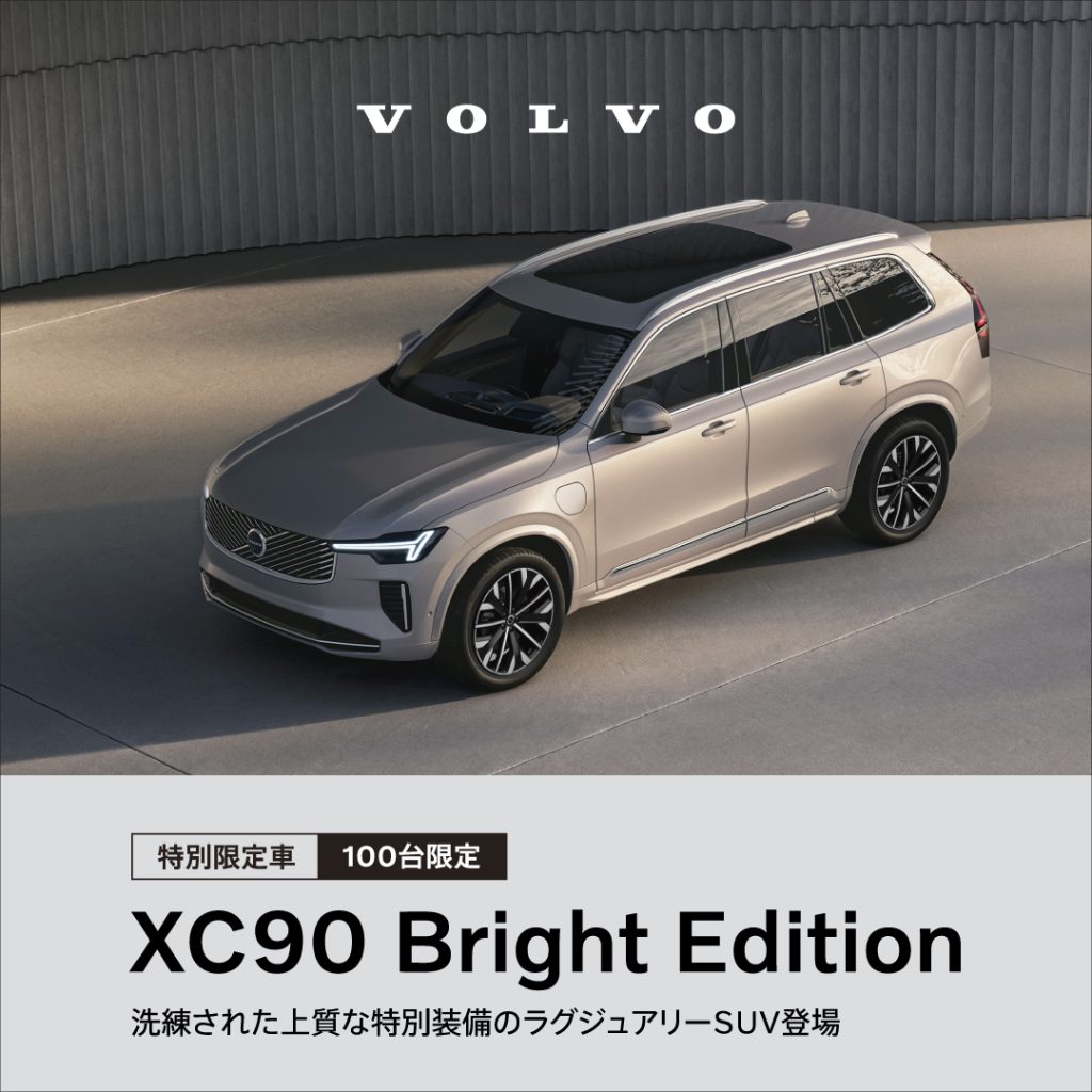 特別限定車XC90 Bright Editionは、「XC90 Ultra T8 AWD Plug-in hybrid」をベースに、Brightエクステリアを採用した特別限定車です。