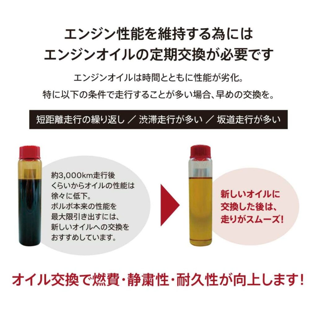 ※また、純正のオイル以外をご使用の場合はエンジン系統の故障が保証対象外になる場合もございますのでご了承ください